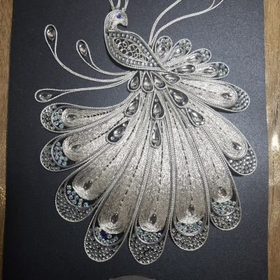 Слика филигран од срма „Паун раскошен“