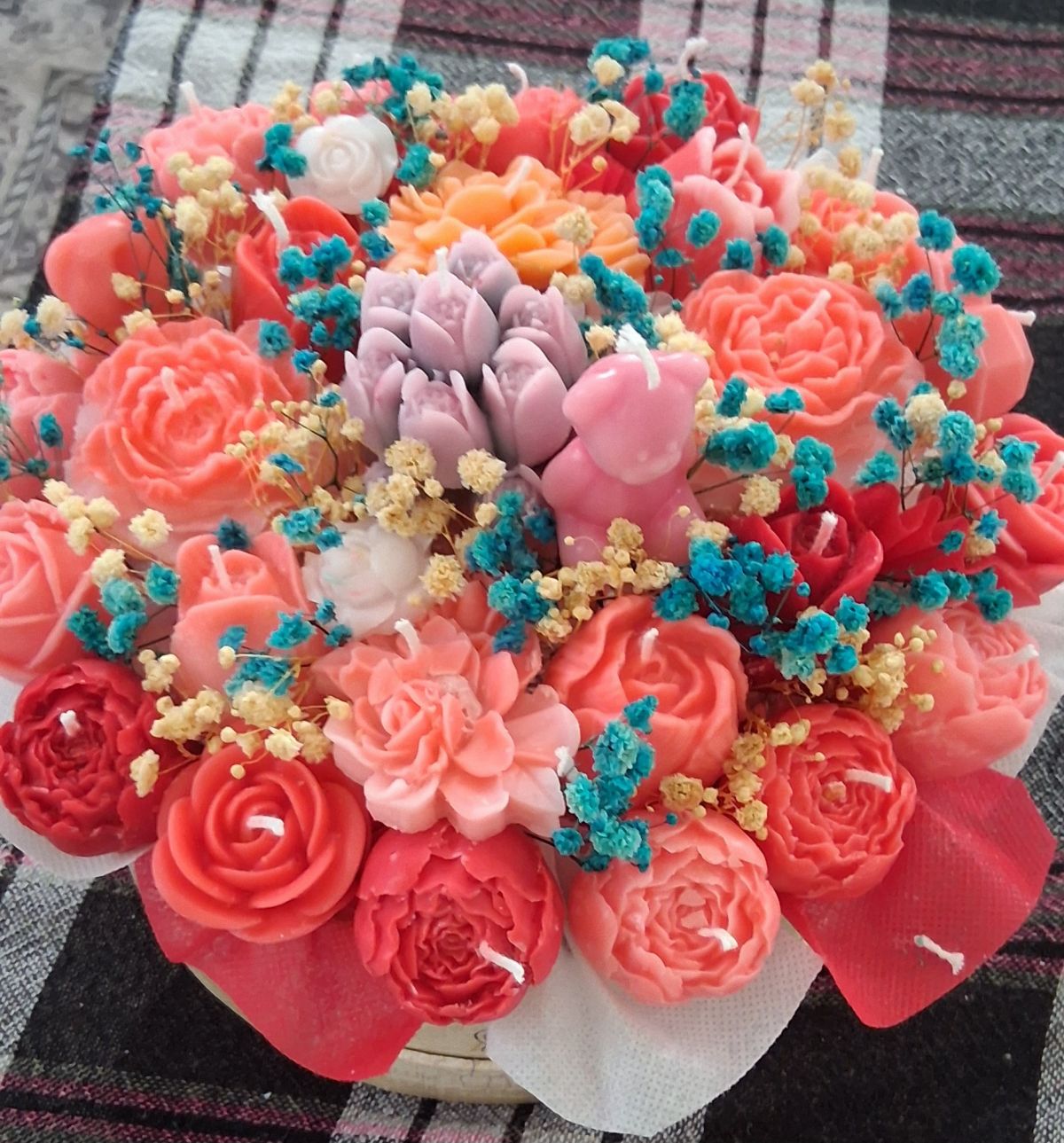 Рачна изработка на миризливи букети од еко восок, со многу љубов.