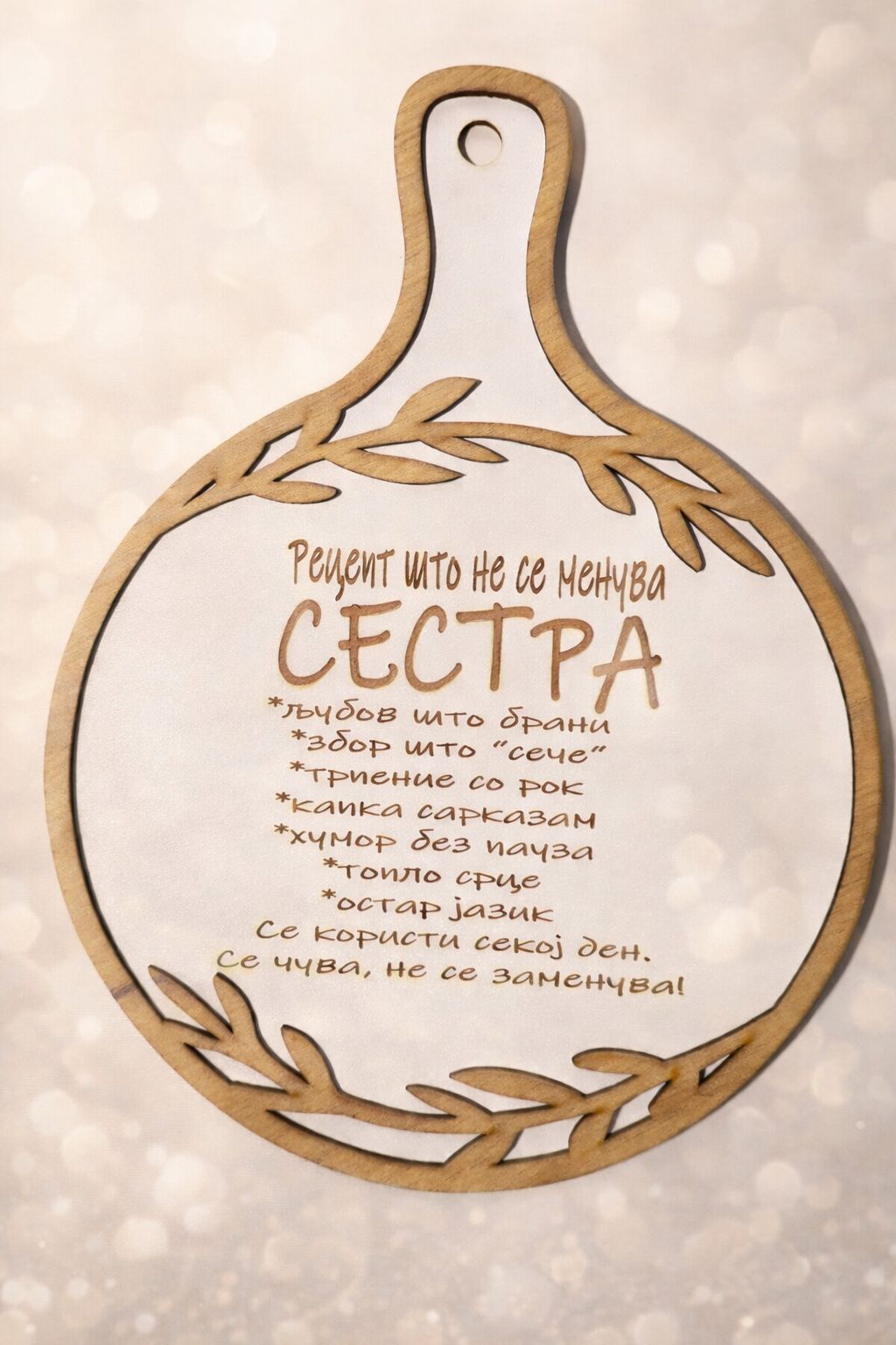 Дрвени таблички со внимателно одбран текст - Рецепт за мама, баба, сестра, тетка, колешка или пријателка.